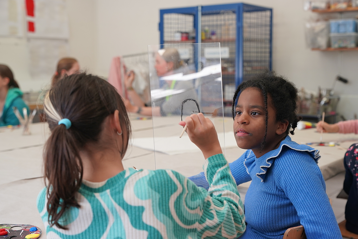 Im Museum Morsbroich können Schulveranstaltungen für alle Schularten und Klassenstufen gebucht werden. Neben der aktiven Betrachtung der Kunstwerke im Museum spielt das kreative Arbeiten und Experimentieren mit Materialien in den Werkstatträumen eine große Rolle.
